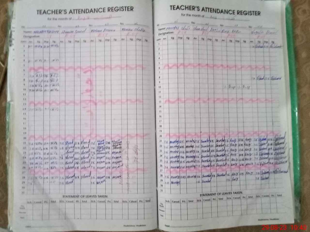 | Monitoring Date: 29-08-2023 | Start Time: 29-08-2023 09:20 AM | End Time: 29-08-2023 10:40 AM | Name of MEA: MU**** YA**** | |