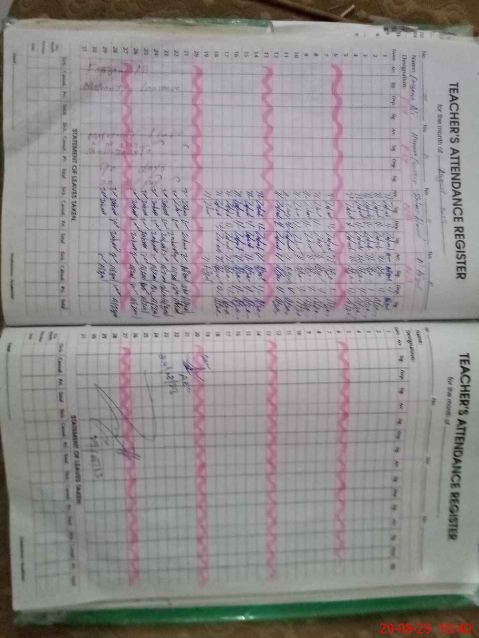 | CNIC | Full Name | Designation | R/C | Absence During Last Calender Month |