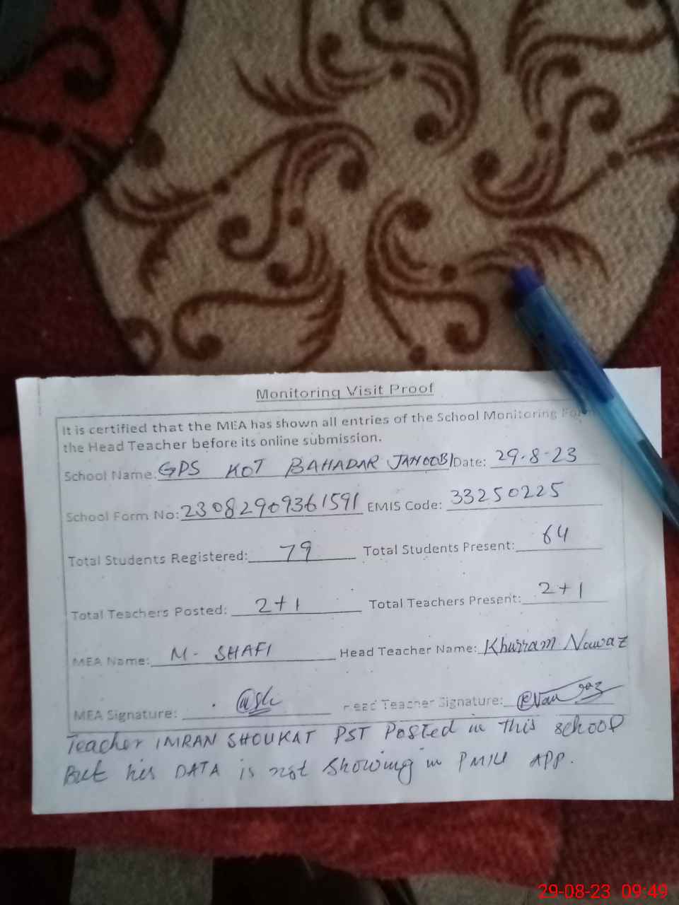 | EMIS Code: 33250225 | Name of School: GPS KOT BAHADAR JANOOBI | |||