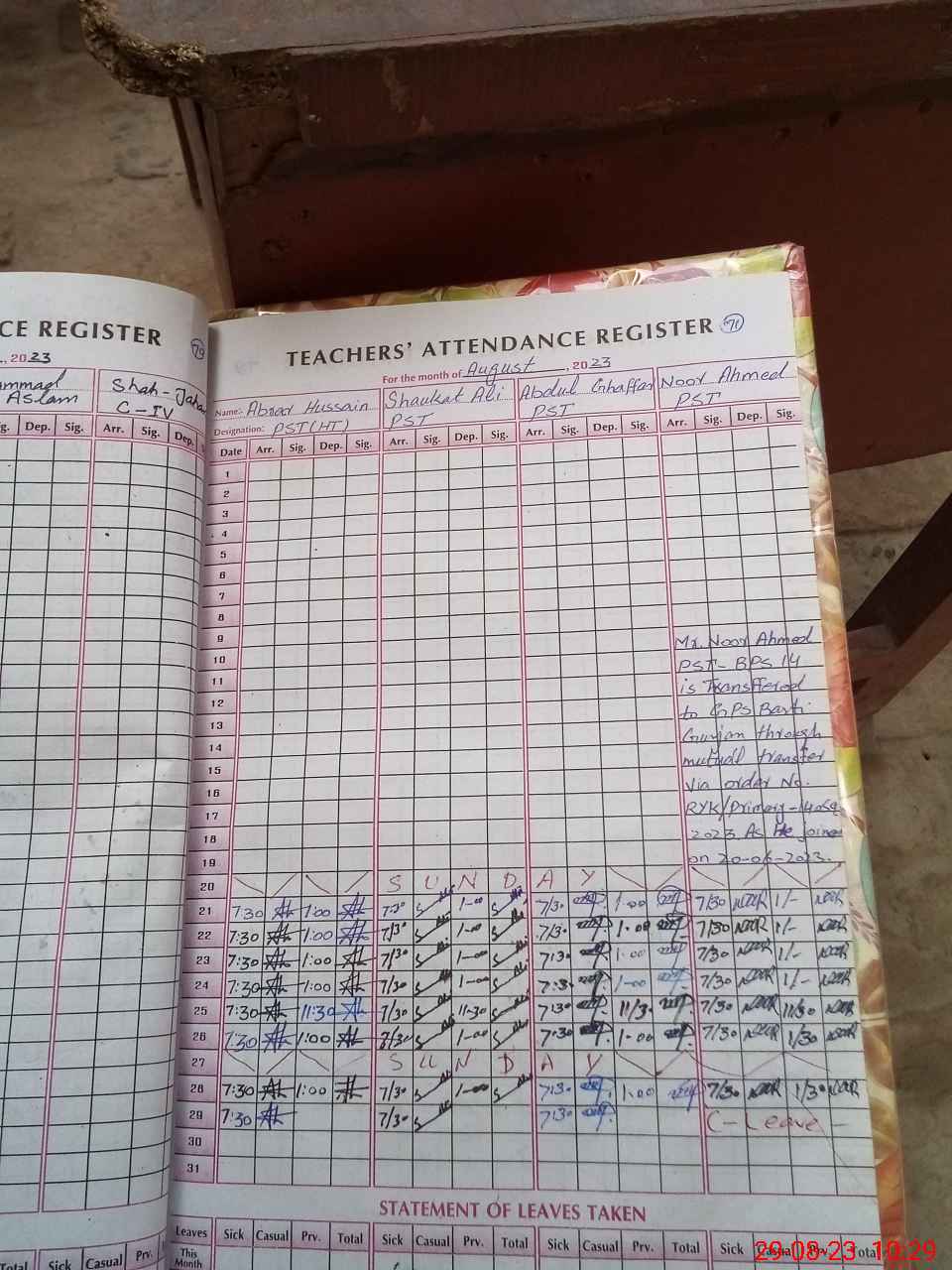 | Name: Ab**** Re**** Designation: (School Headmaster's/Headmistress's) PST Phone/Cell Number: 03**** |