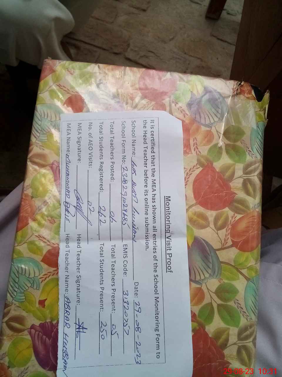 | Certified that this School was Inspected by the Undersigned MEA/DMO Today and the Information Stated Above is as Per Record. | |||||