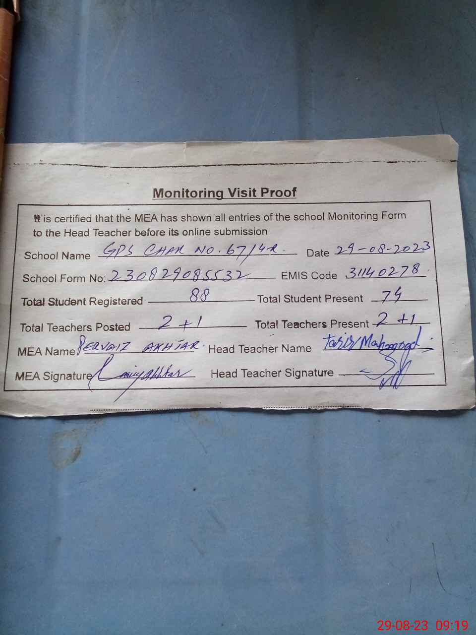 | EMIS Code: 31140278 | Name of School: GPS CHAK NO.66/4-R | |||