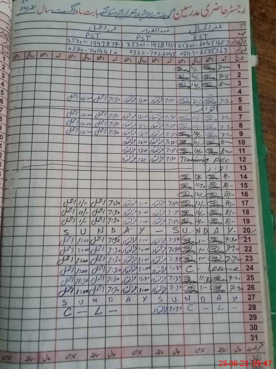 | Name: ZA**** IQ**** Designation: (School Headmaster's/Headmistress's) EST AT Phone/Cell Number: 03**** |