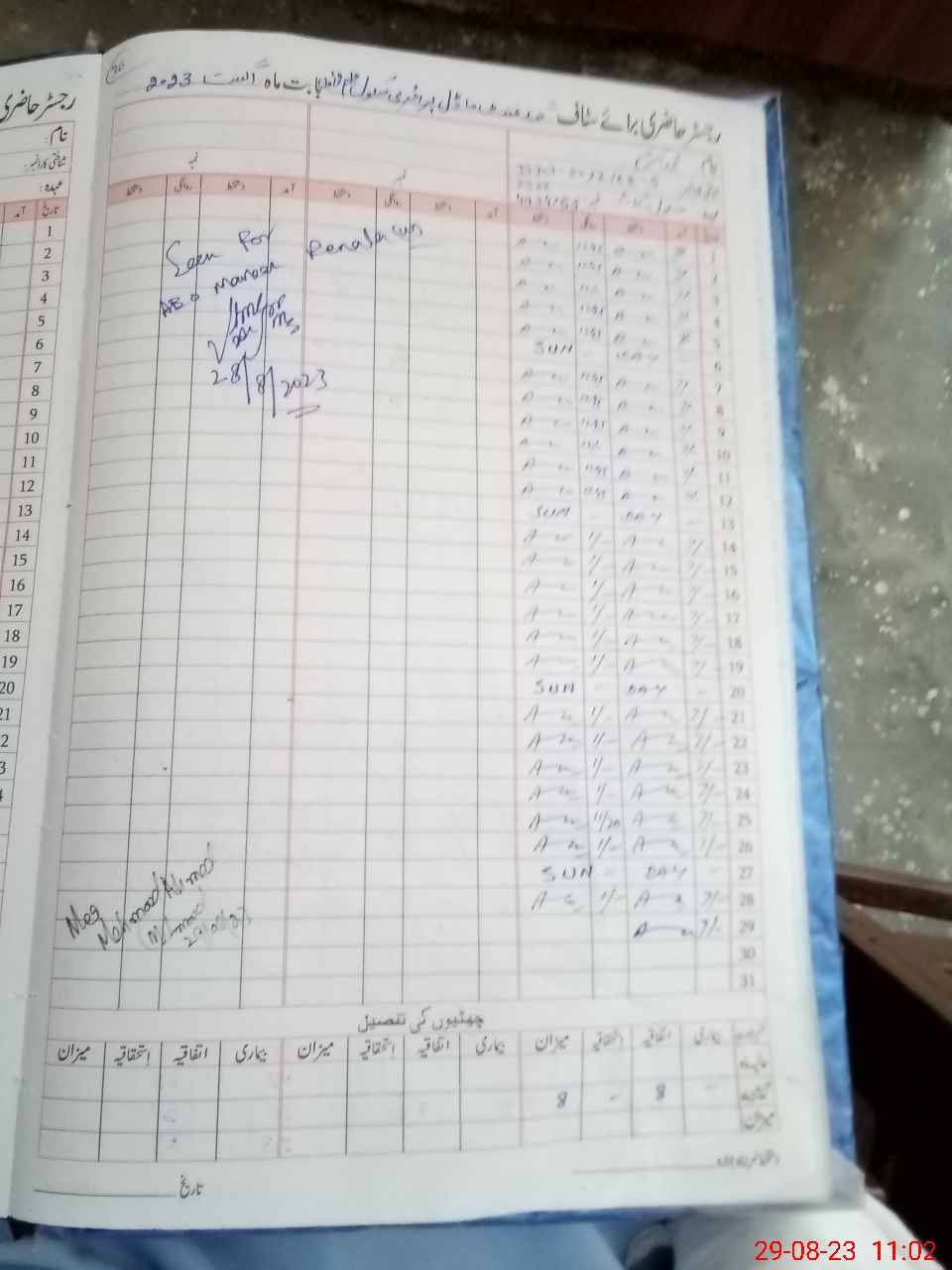 | CNIC | Full Name | Designation | R/C | Absence During Last Calender Month |