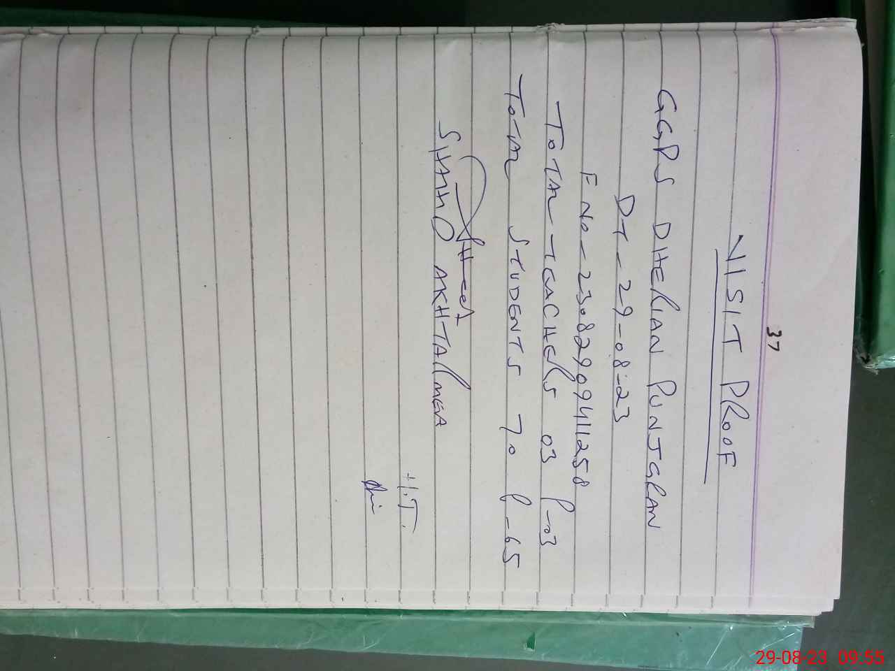 | Attendance Register | Head Teacher | MEA with School | Visit Proof |
