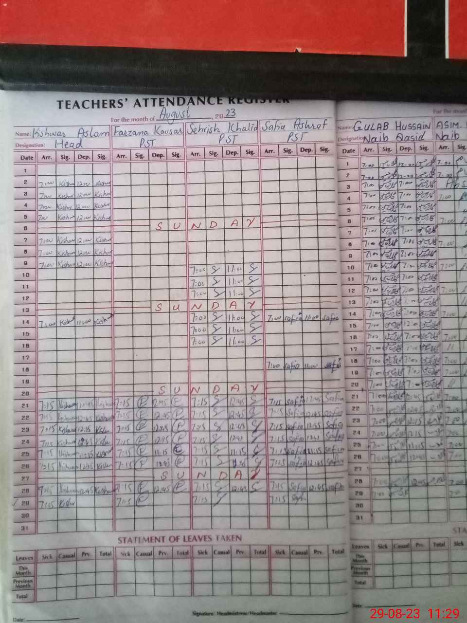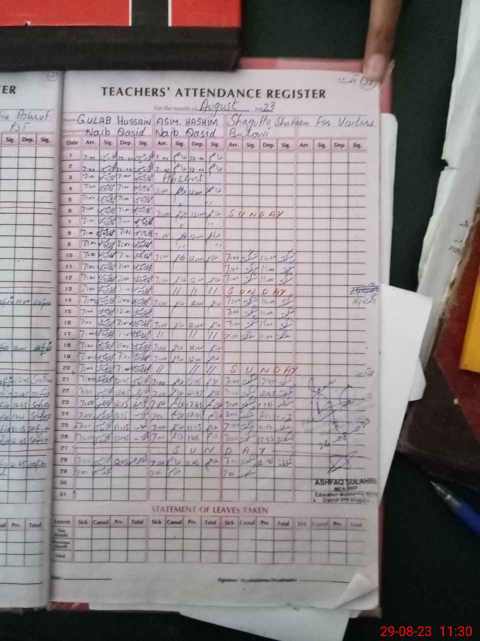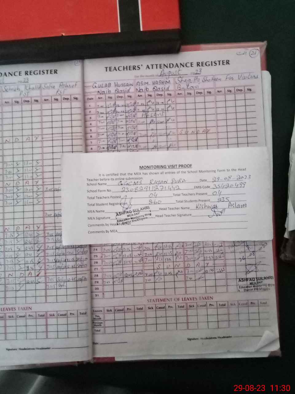 | Attendance Register | Head Teacher | MEA with School | Visit Proof |