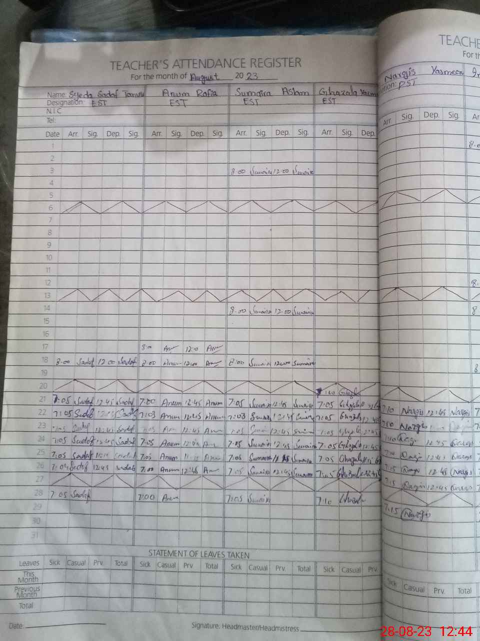 | Monitoring Date: 28-08-2023 | Start Time: 28-08-2023 11:02 AM | End Time: 28-08-2023 12:55 PM | Name of MEA: Mu**** As**** | |