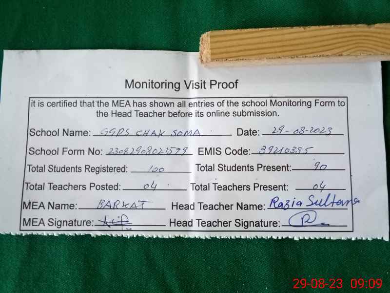 | EMIS Code: 39210385 | Name of School: GGPS CHAK SOMA | |||