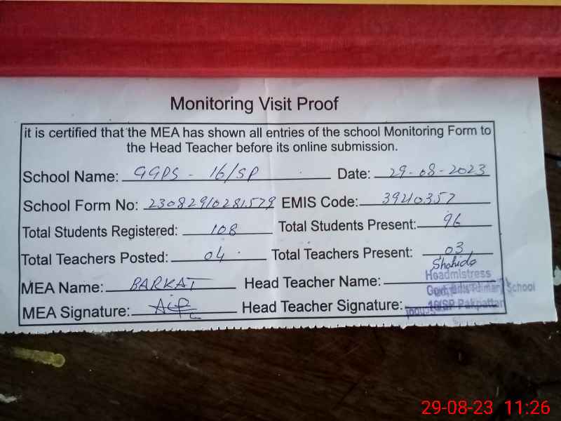 | EMIS Code: 39210357 | Name of School: GGPS 16 SP | |||