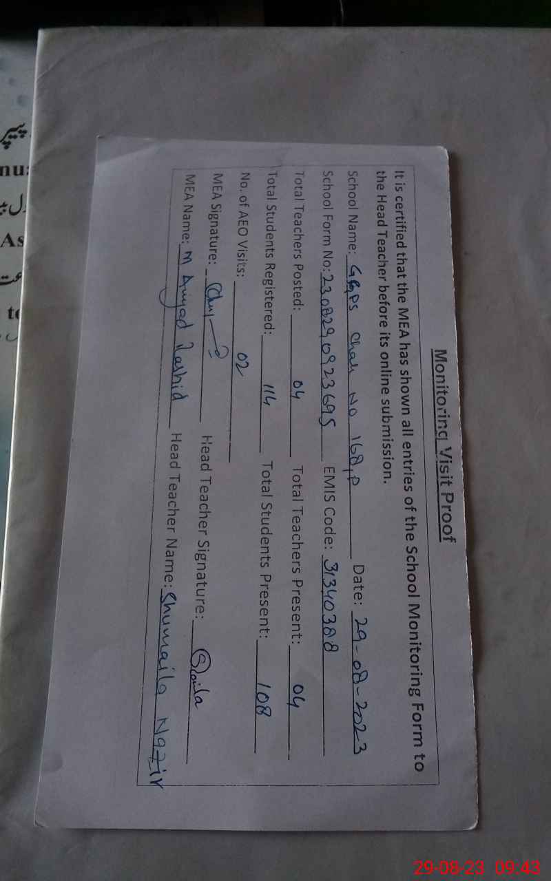 | EMIS Code: 31340388 | Name of School: GGPS CHAK 168/P | |||