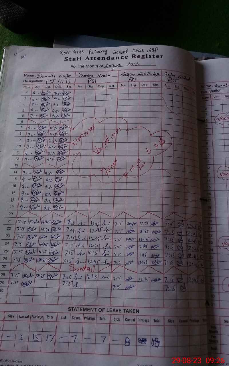 | Remarks (Use Separate Page if Required): PST Hassina Allah Bachaya and PST Saba Arshad posted to this school but not yet updated on sis | |||||