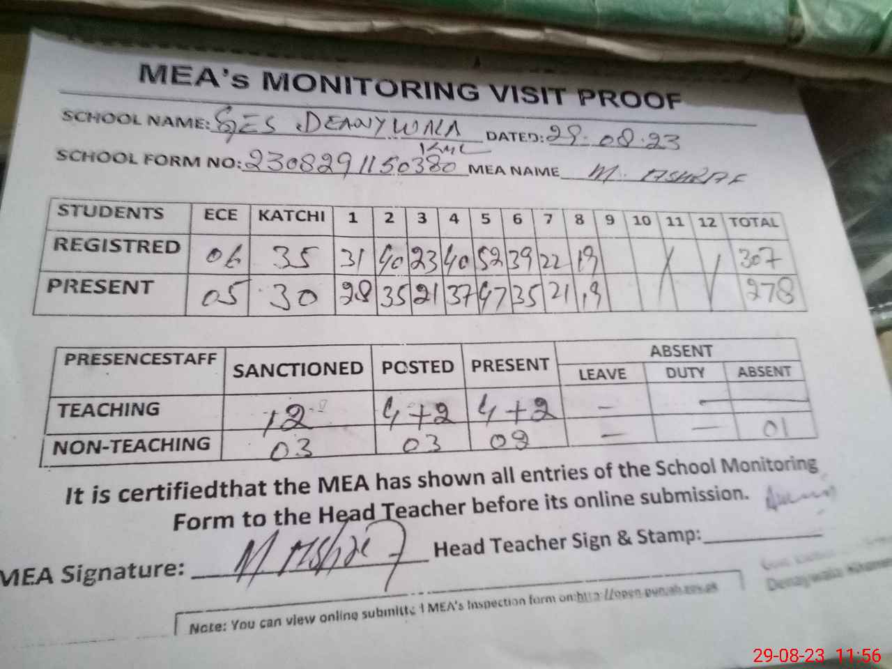 | EMIS Code: 36420072 | Name of School: GES DENAY WALA, KHANEWAL | |||