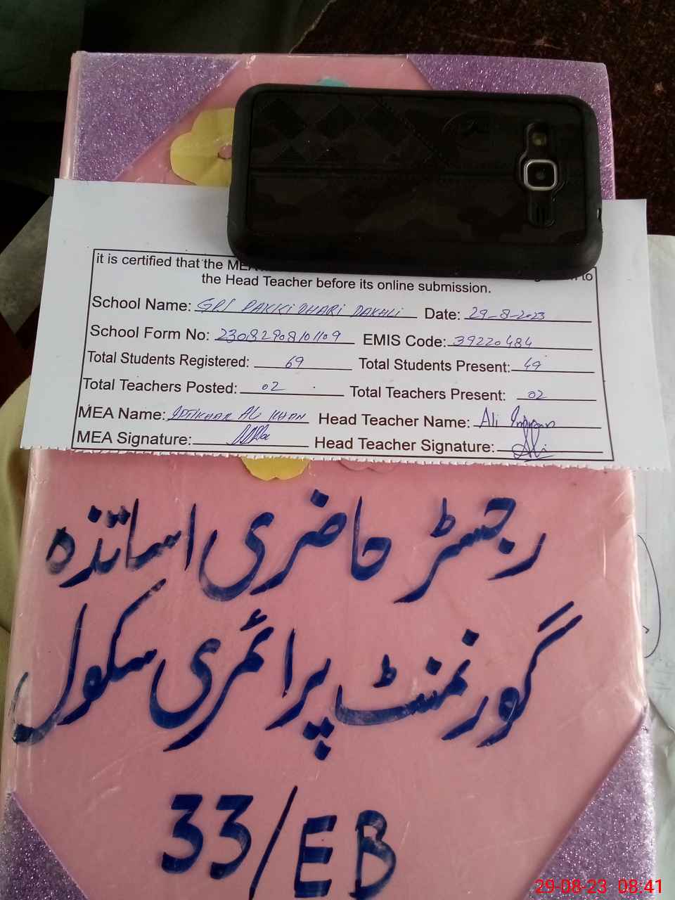 | EMIS Code: 39220484 | Name of School: GPS PAKKI DHARY DAKHLI CHAK NO. 33 EB | |||