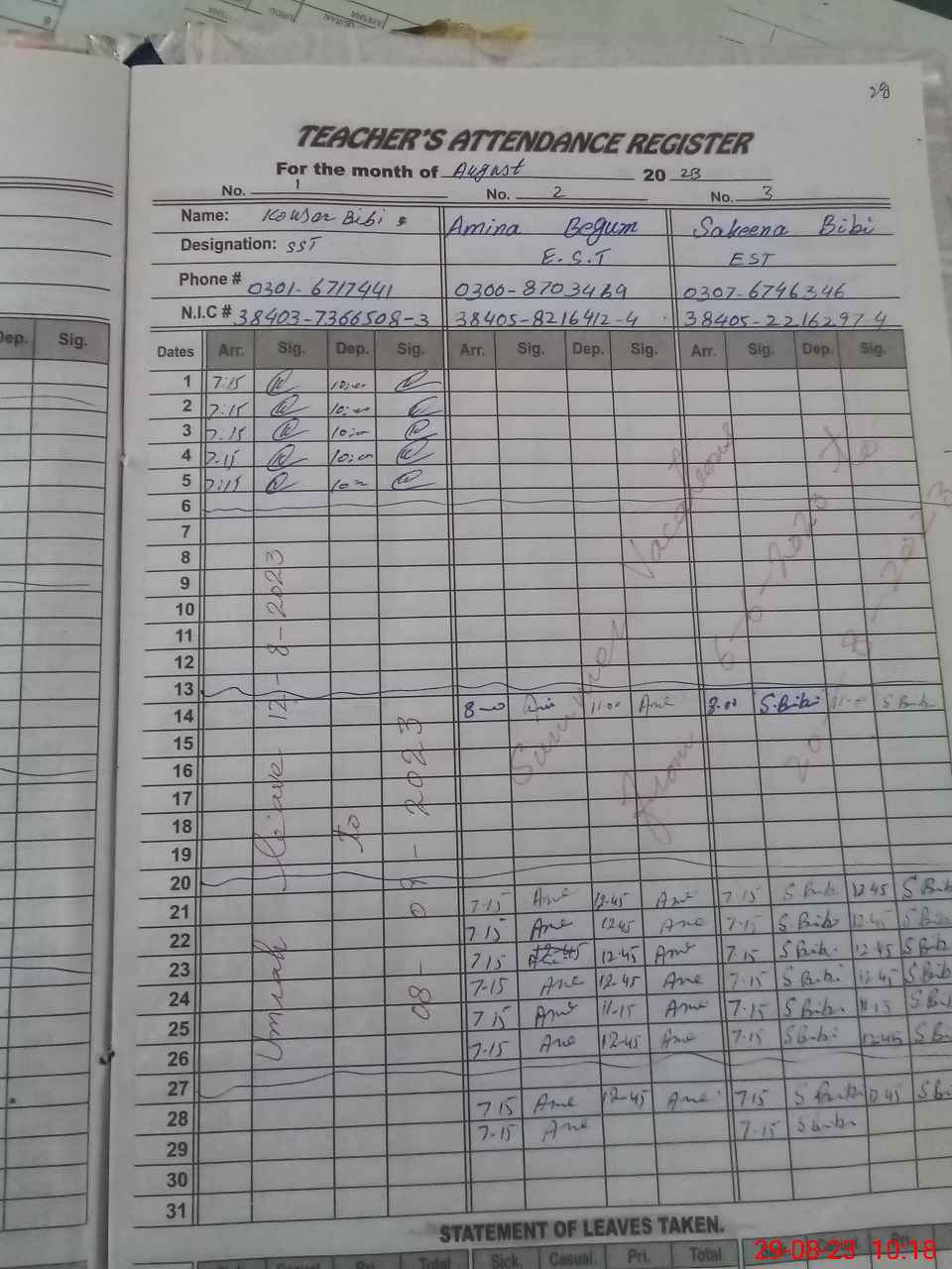 | Name: As**** Sh**** Designation: (School Headmaster's/Headmistress's) SST SCI Phone/Cell Number: 03**** |