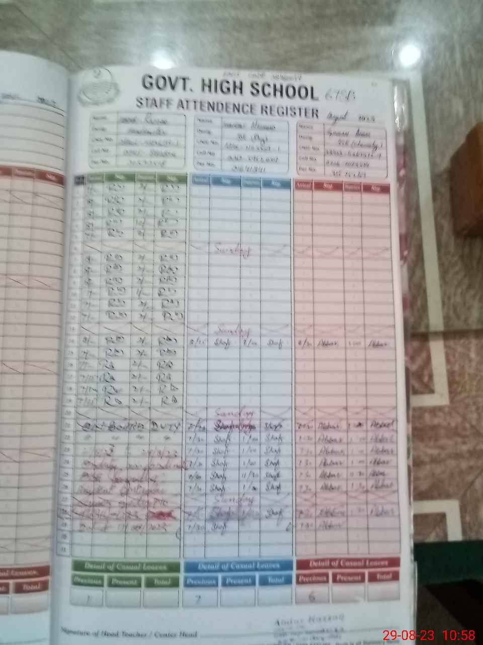 | CNIC | Full Name | Designation | R/C | Absence During Last Calender Month |