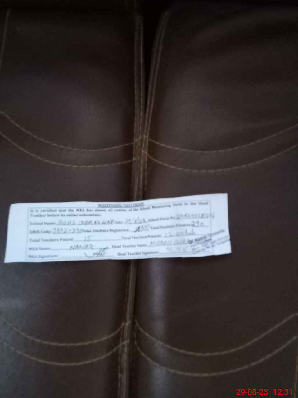 | Attendance Register | Head Teacher | MEA with School | Visit Proof |