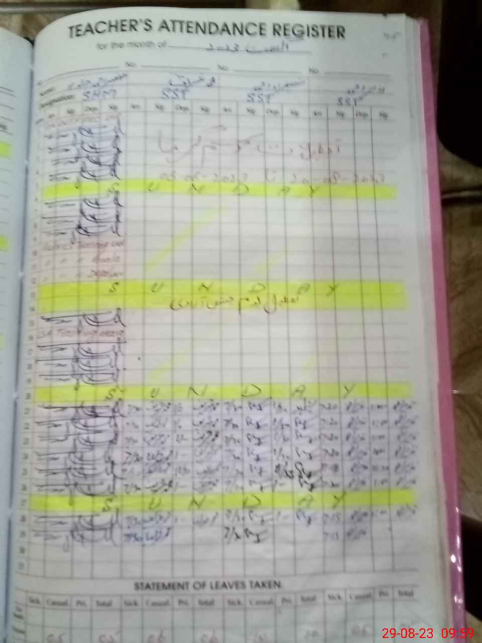 | CNIC | Full Name | Designation | R/C | Absence During Last Calender Month |