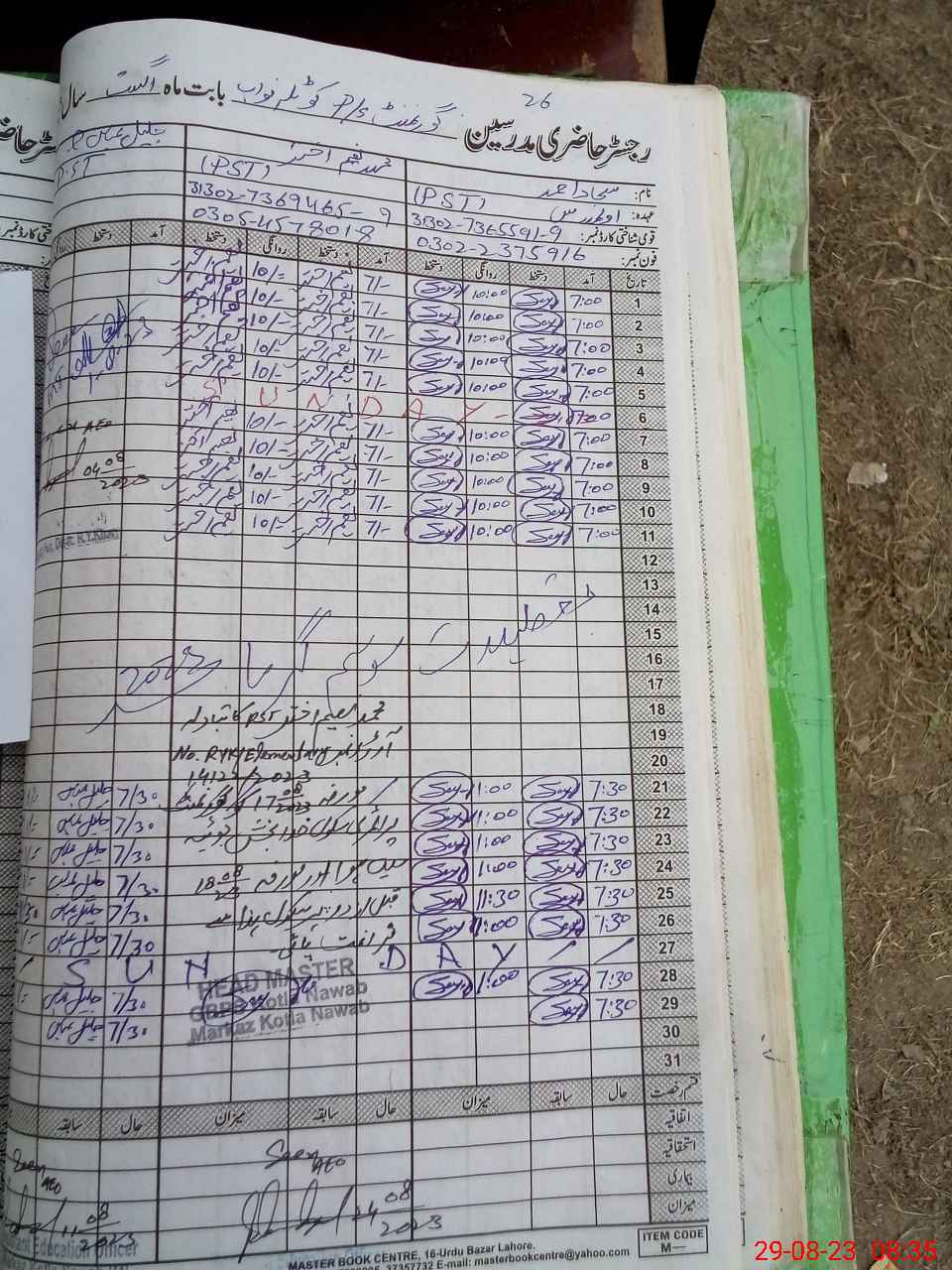 | Name: SA**** AH**** Designation: (School Headmaster's/Headmistress's) PST Phone/Cell Number: 03**** |