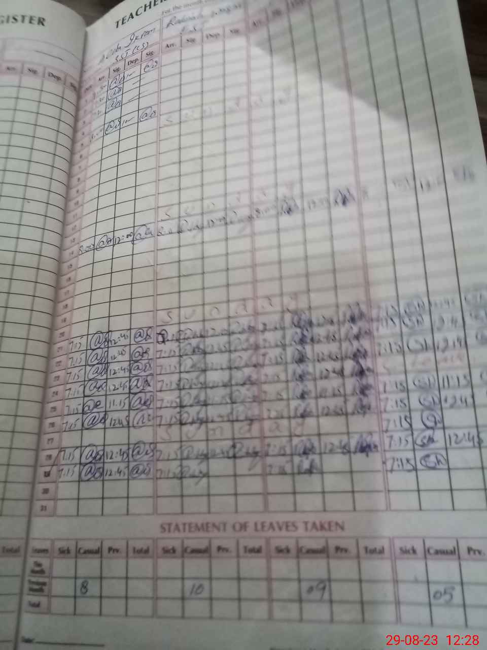 | Leave | Duty | Absent | Maternity | Medical | Ex- Pak |