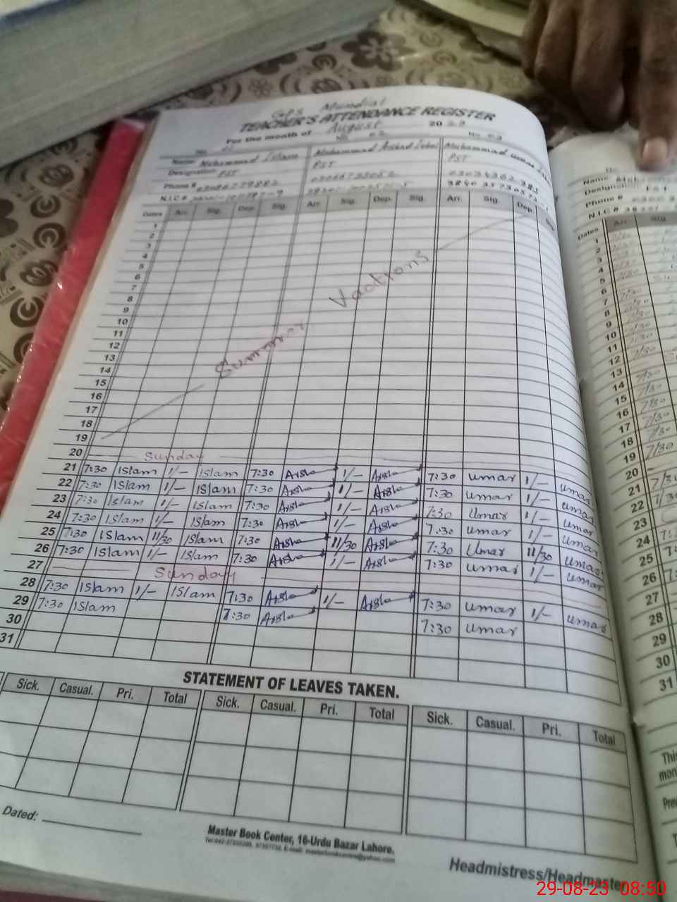 | Name: MU**** IS**** Designation: (School Headmaster's/Headmistress's) PST Phone/Cell Number: 03**** |