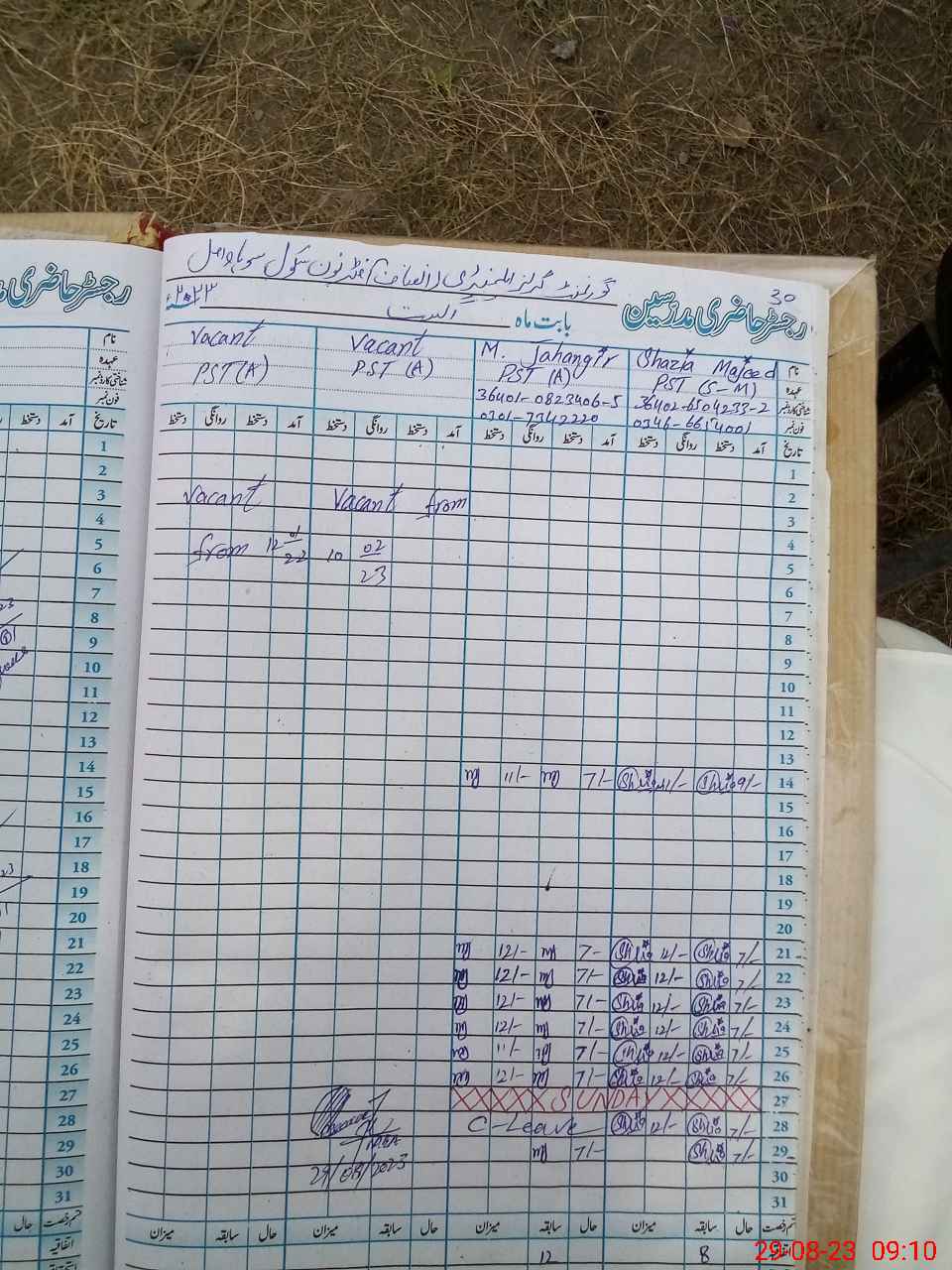 | Name: SH**** MA**** Designation: (School Headmaster's/Headmistress's) PST Phone/Cell Number: 03**** |