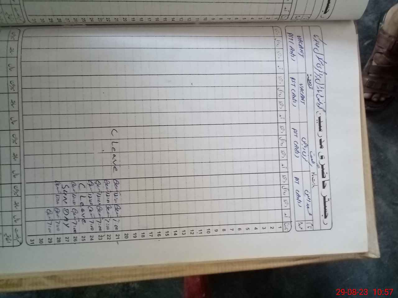 | CNIC | Full Name | Designation | R/C | Absence During Last Calender Month |