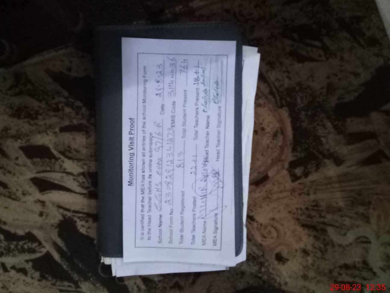 | Certified that this School was Inspected by the Undersigned MEA/DMO Today and the Information Stated Above is as Per Record. | |||||