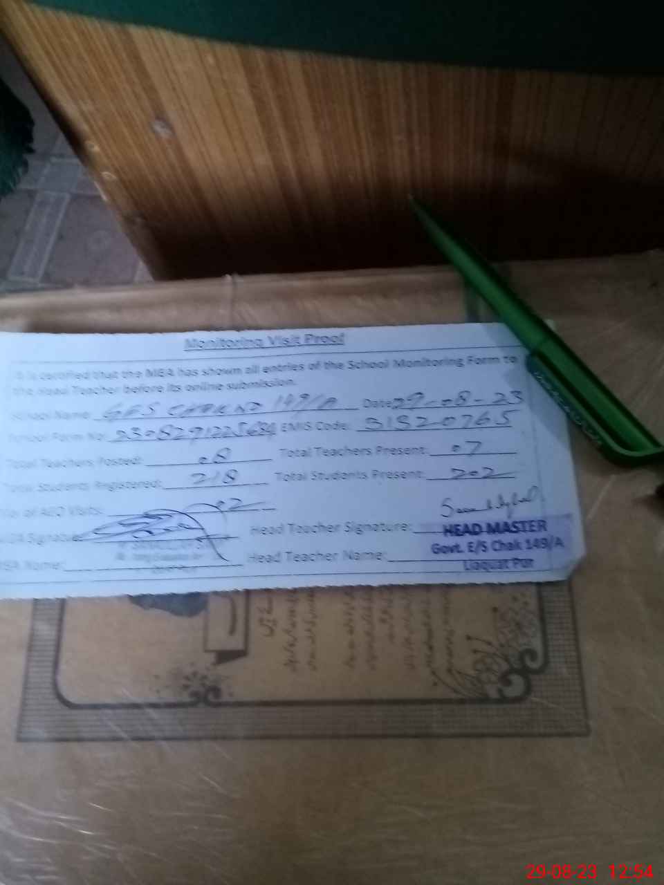 | EMIS Code: 31320765 | Name of School: GES CHAK NO. 149/A | |||