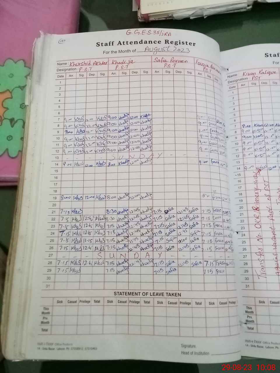 | Name: KH**** BE**** Designation: (School Headmaster's/Headmistress's) SST Phone/Cell Number: 03**** |
