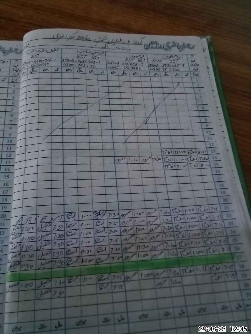 | CNIC | Full Name | Designation | R/C | Absence During Last Calender Month |