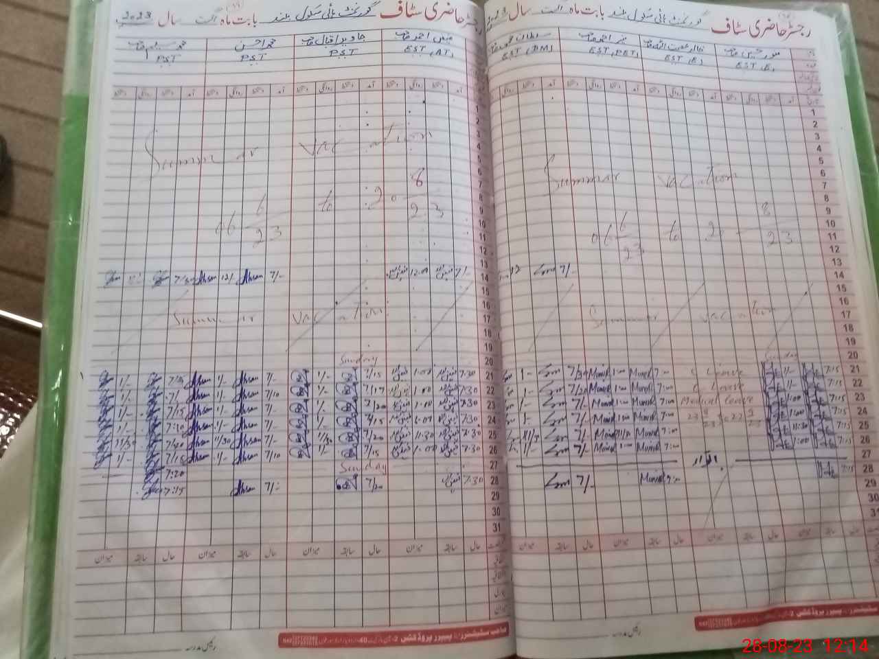 | CNIC | Full Name | Designation | R/C | Absence During Last Calender Month |