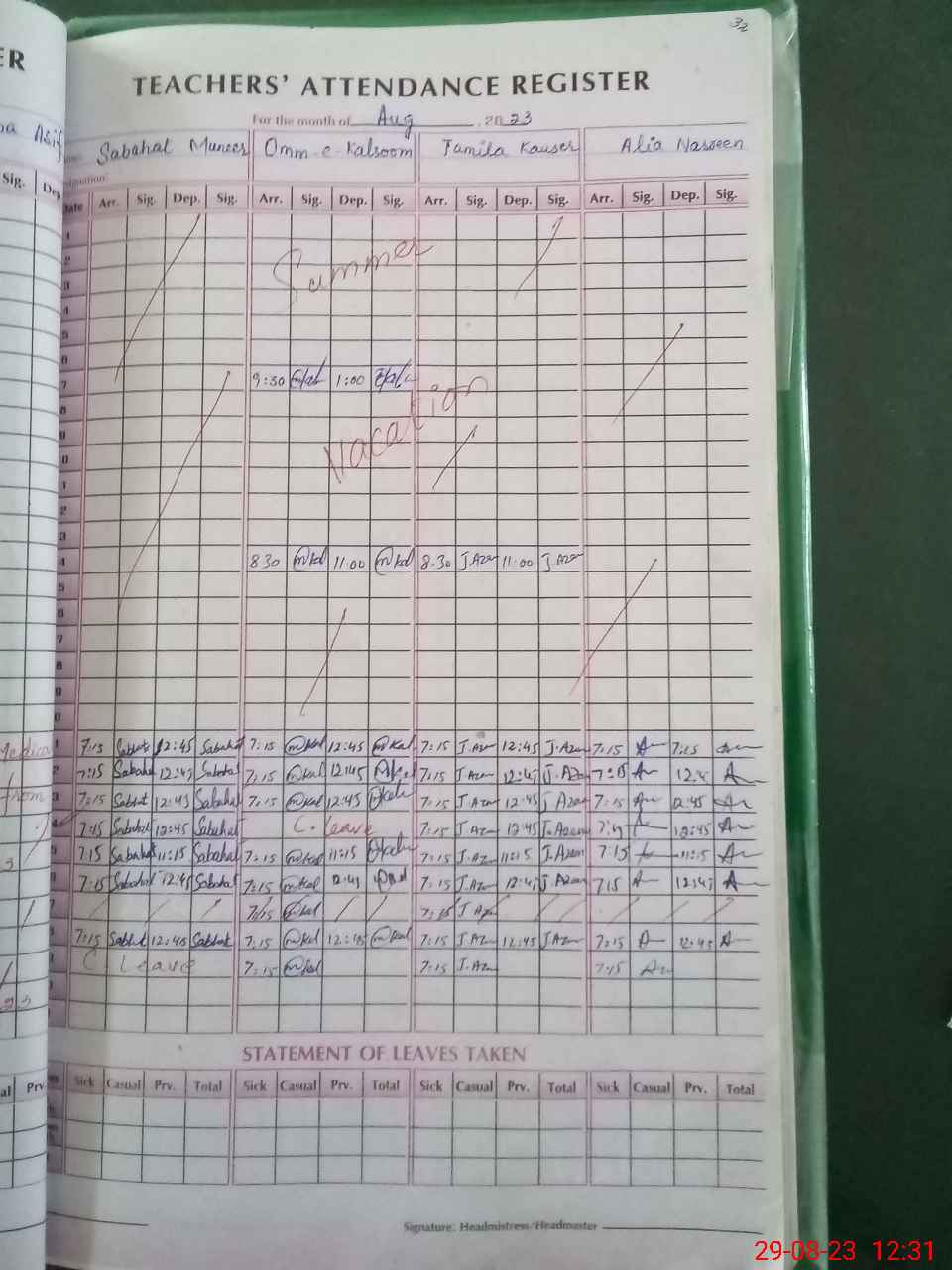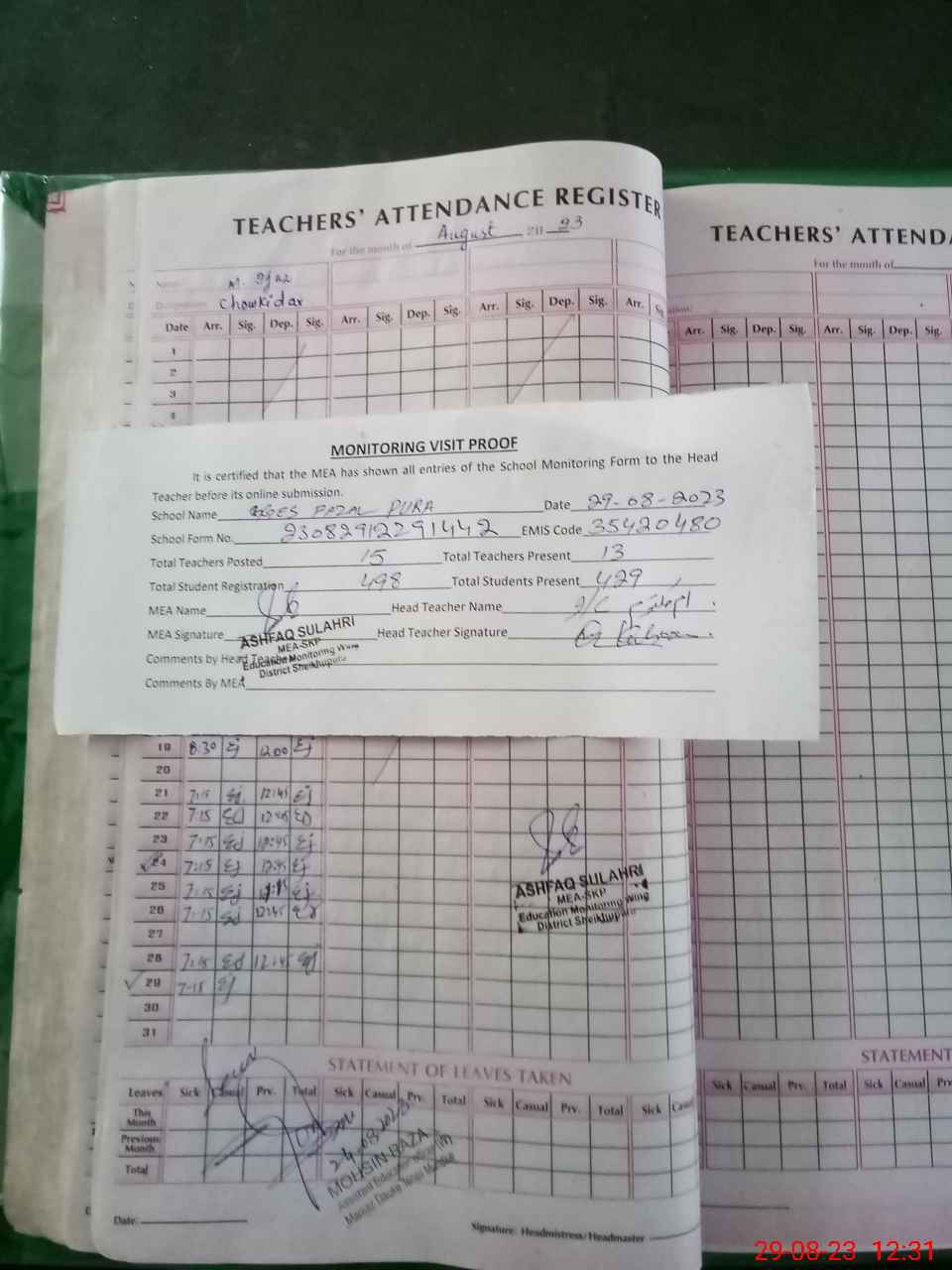 | Attendance Register | Head Teacher | MEA with School | Visit Proof |