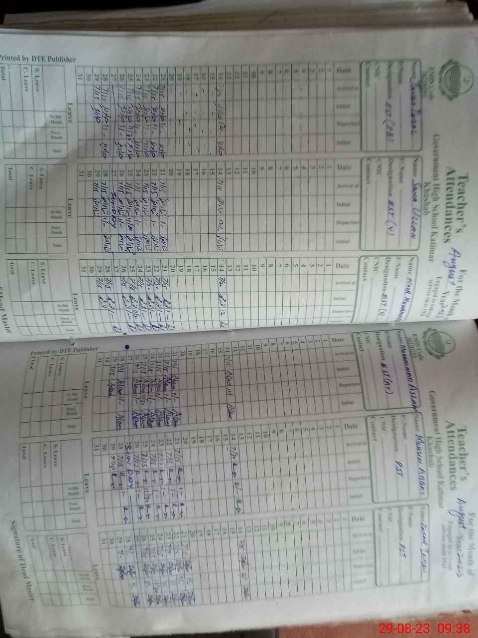 | Name: Sh**** Al**** Designation: (School Headmaster's/Headmistress's) SST G Phone/Cell Number: 03**** |