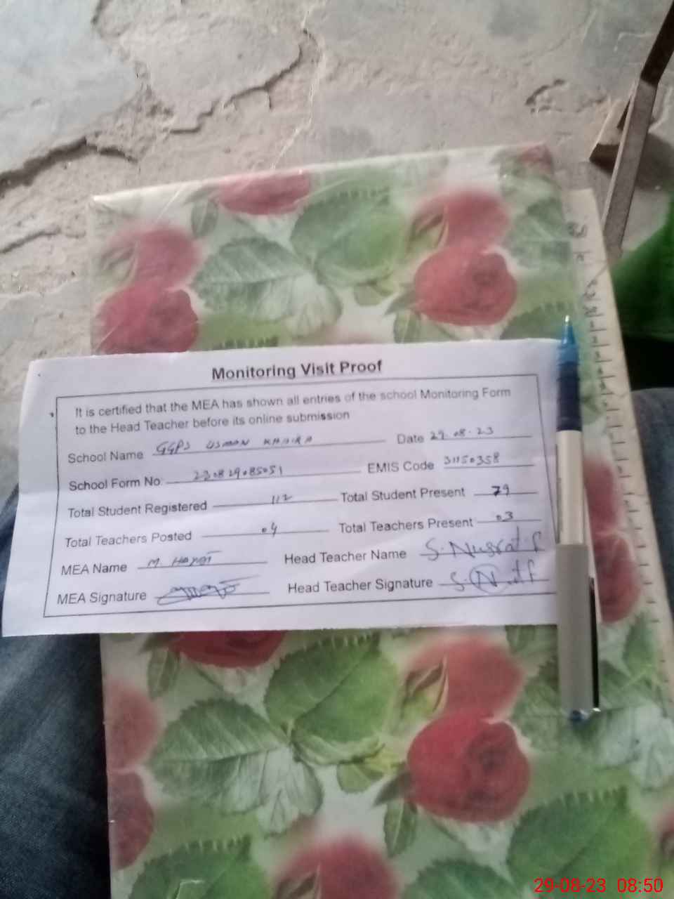 | EMIS Code: 31150358 | Name of School: GGPS USMAN KHARA | |||