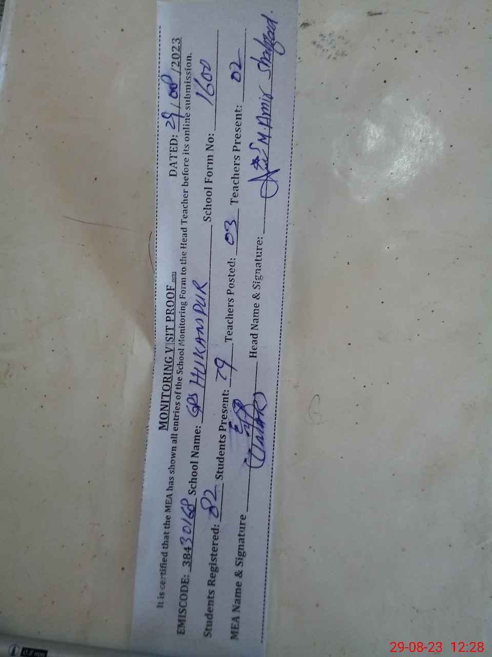 | EMIS Code: 38430168 | Name of School: GPS HUKAM PUR | |||