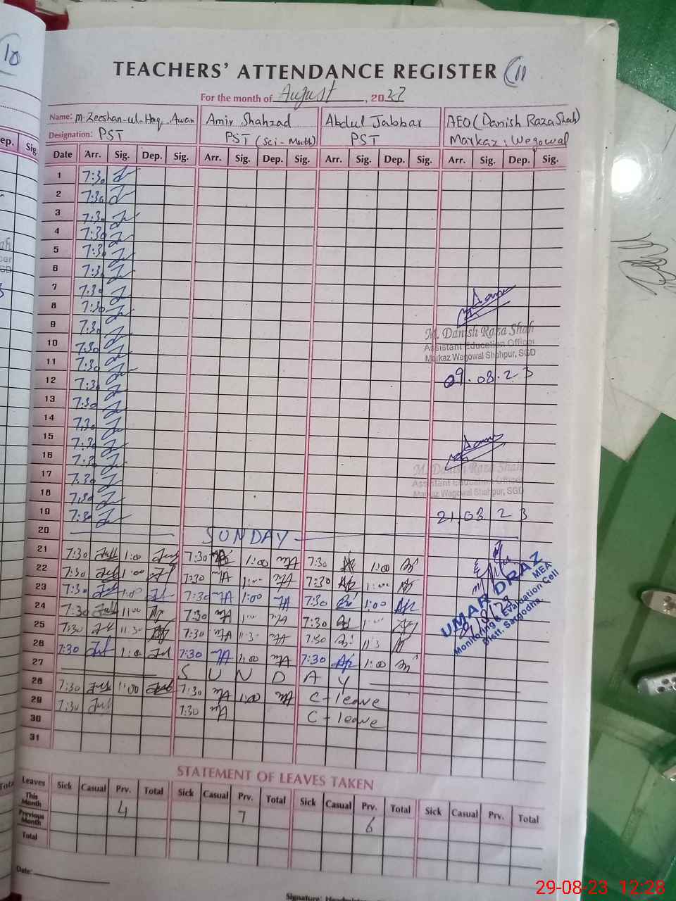 | Name: AB**** JA**** Designation: (School Headmaster's/Headmistress's) PST Phone/Cell Number: 03**** |
