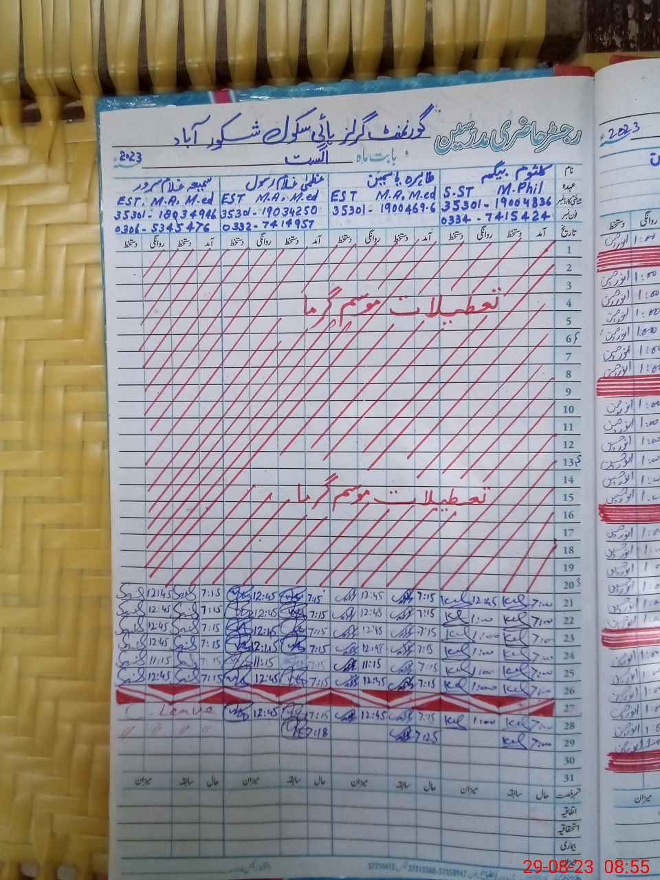 | Name: KA**** BE**** Designation: (School Headmaster's/Headmistress's) S.S.T.(Arts) Phone/Cell Number: 03**** |