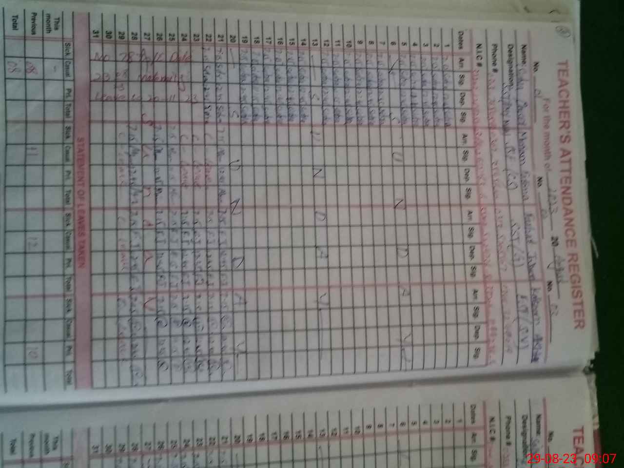 | CNIC | Full Name | Designation | R/C | Absence During Last Calender Month |