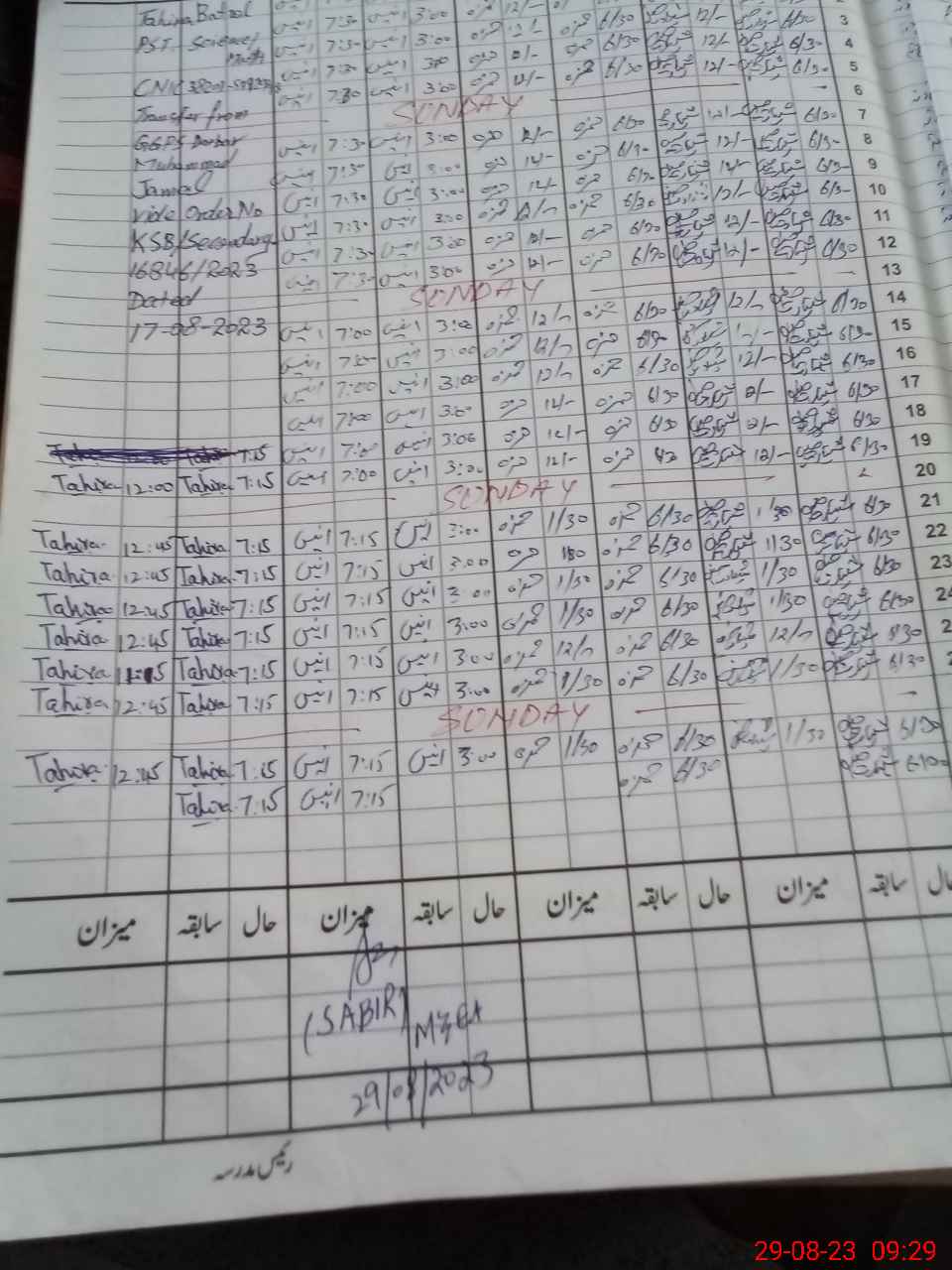 | Monitoring Date: 29-08-2023 | Start Time: 29-08-2023 08:59 AM | End Time: 29-08-2023 10:15 AM | Name of MEA: SA**** HU**** | |