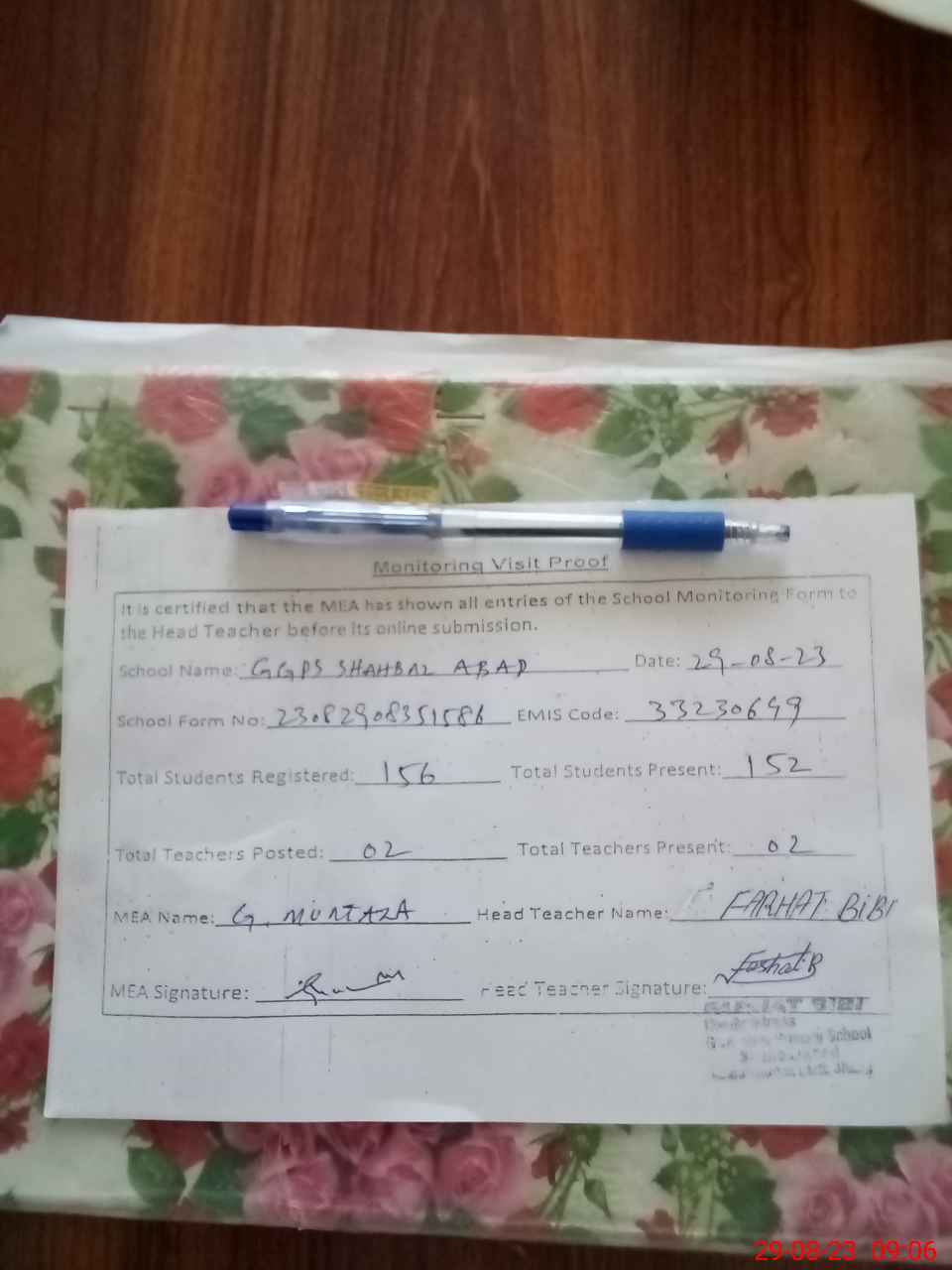 | EMIS Code: 33230649 | Name of School: GGPS SHAHBAZ ABAD | |||