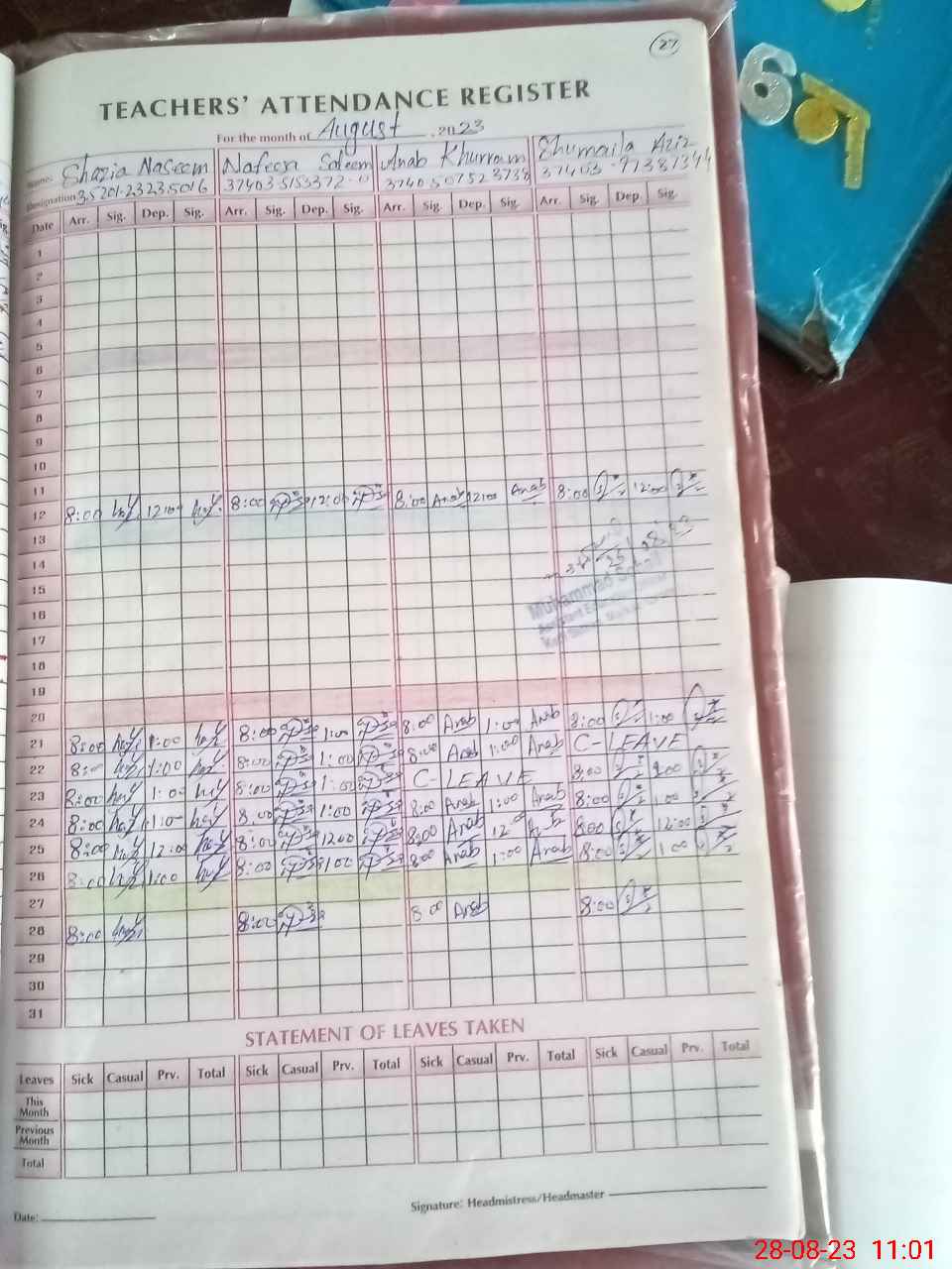 | Name: SH**** NA**** Designation: (School Headmaster's/Headmistress's) PST Phone/Cell Number: 03**** |