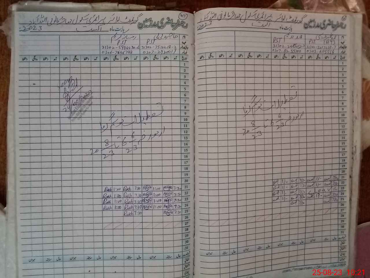 | Name: Mu**** Na**** Designation: (School Headmaster's/Headmistress's) PST Phone/Cell Number: 03**** |