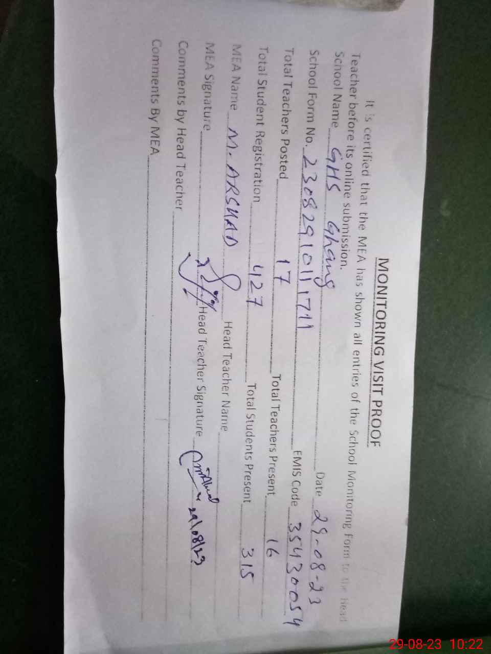 | EMIS Code: 35430054 | Name of School: GHS GHANG SHEIKHUPURA | |||