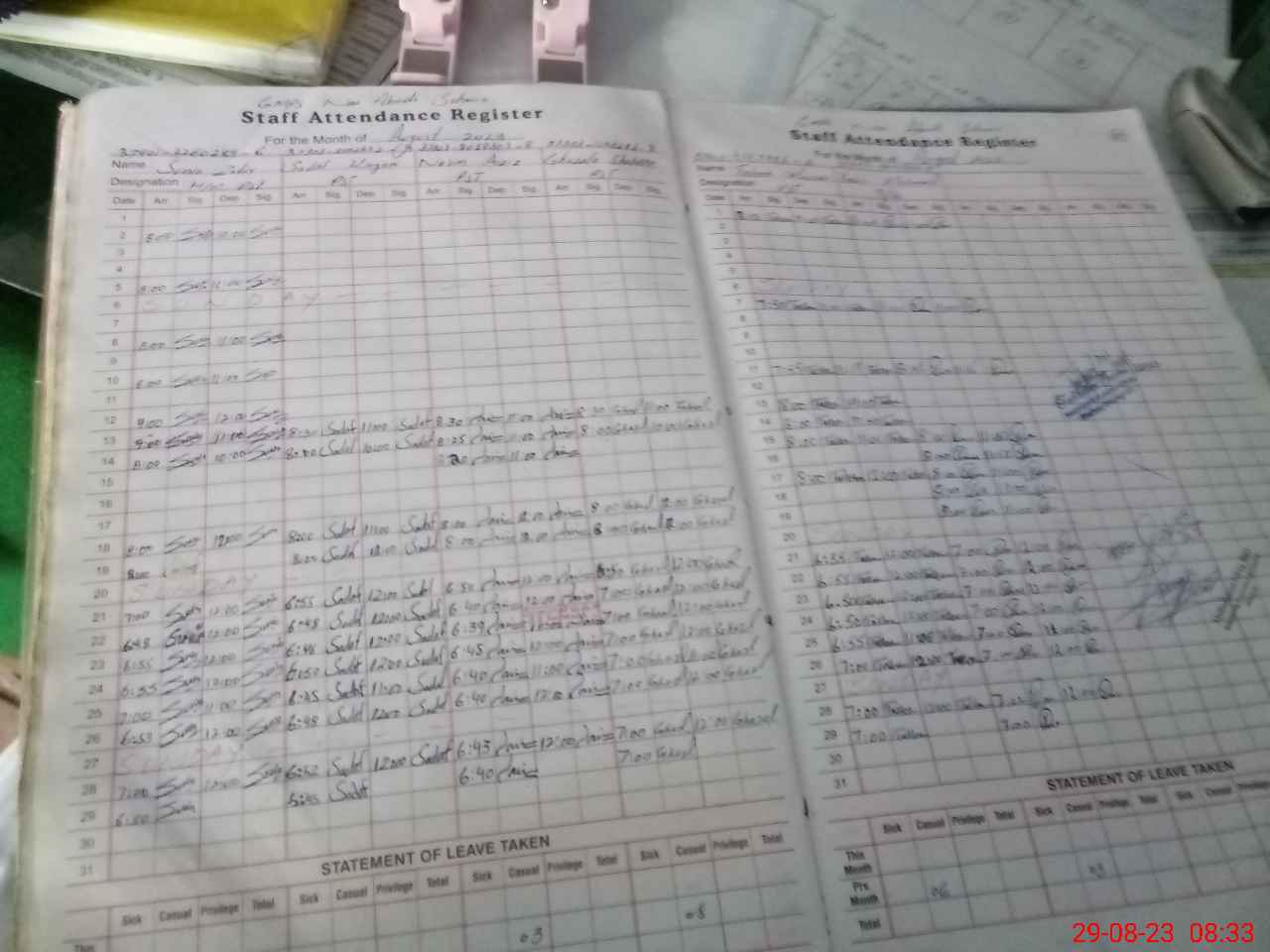 | CNIC | Full Name | Designation | R/C | Absence During Last Calender Month |