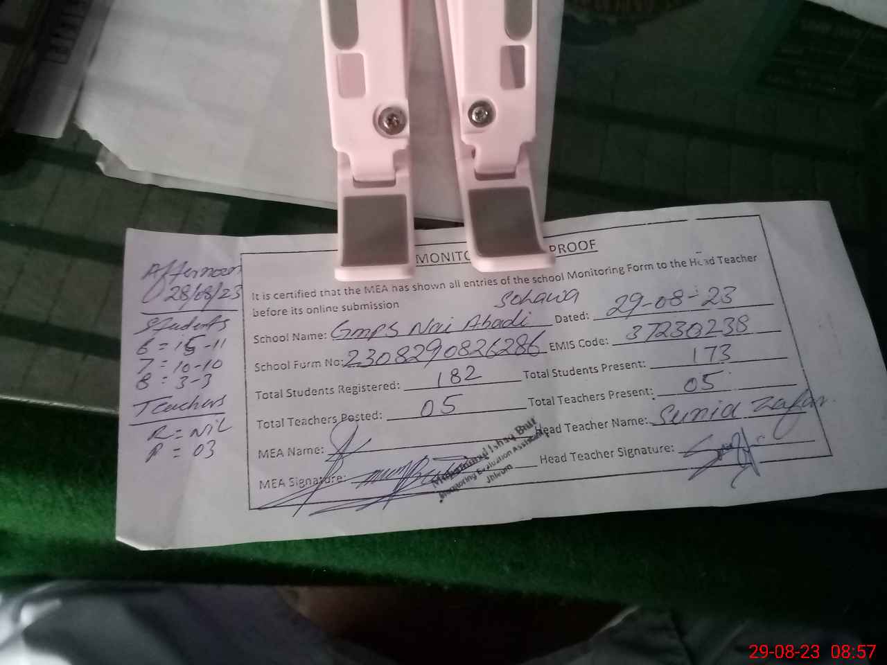 | Attendance Register | Head Teacher | MEA with School | Visit Proof |