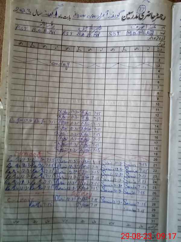 | Total no. of Classrooms: 10 No. of Classrooms Used for Teaching: 8 No. of Classrooms Storing Old Furniture, FTBs, etc: 0Comments if Any: PST Tahira Firdous posted in but her record not available in PMIU application |
