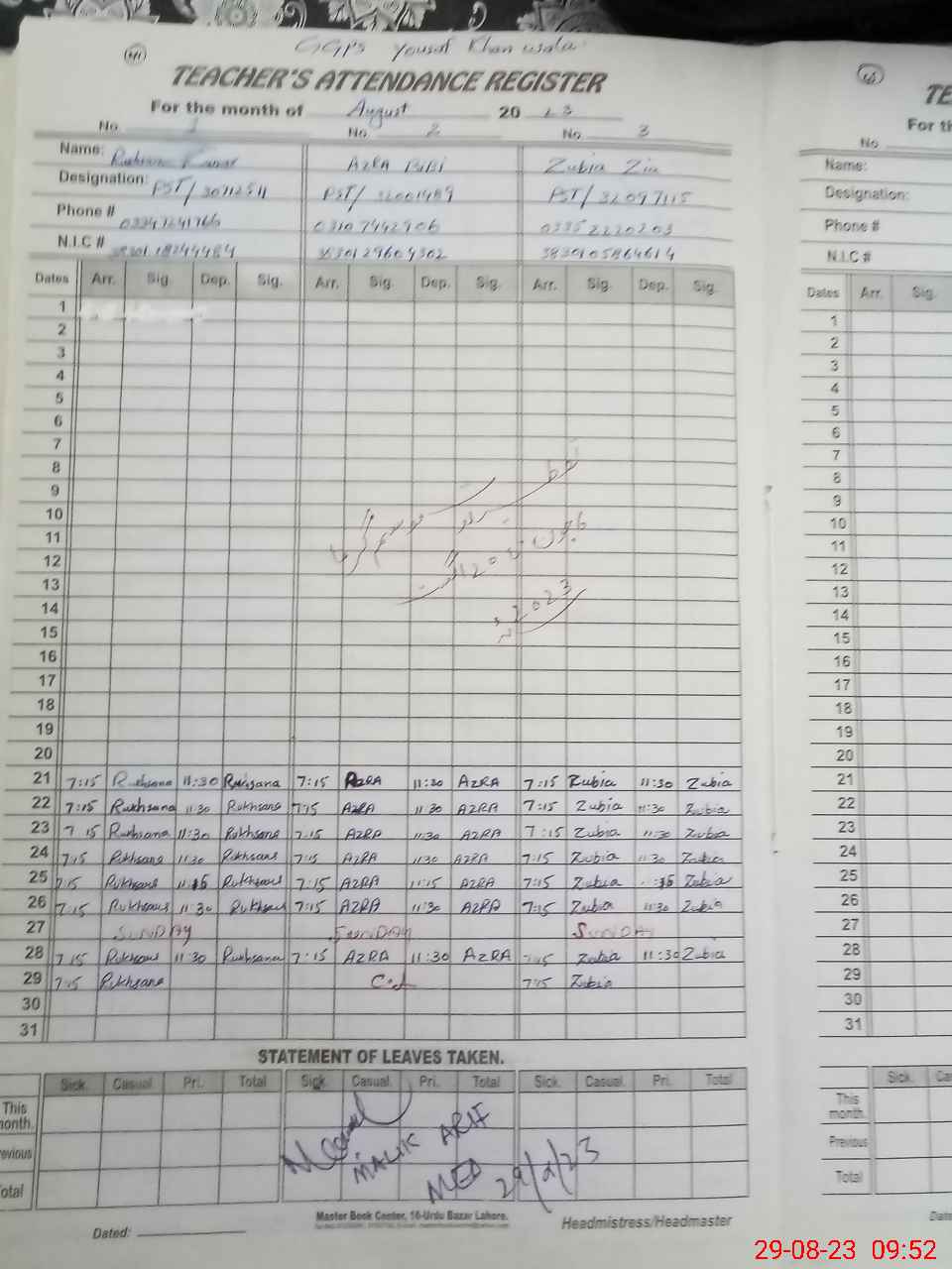 | Name: Zu**** Zi**** Designation: (School Headmaster's/Headmistress's) PST Phone/Cell Number: 03**** |