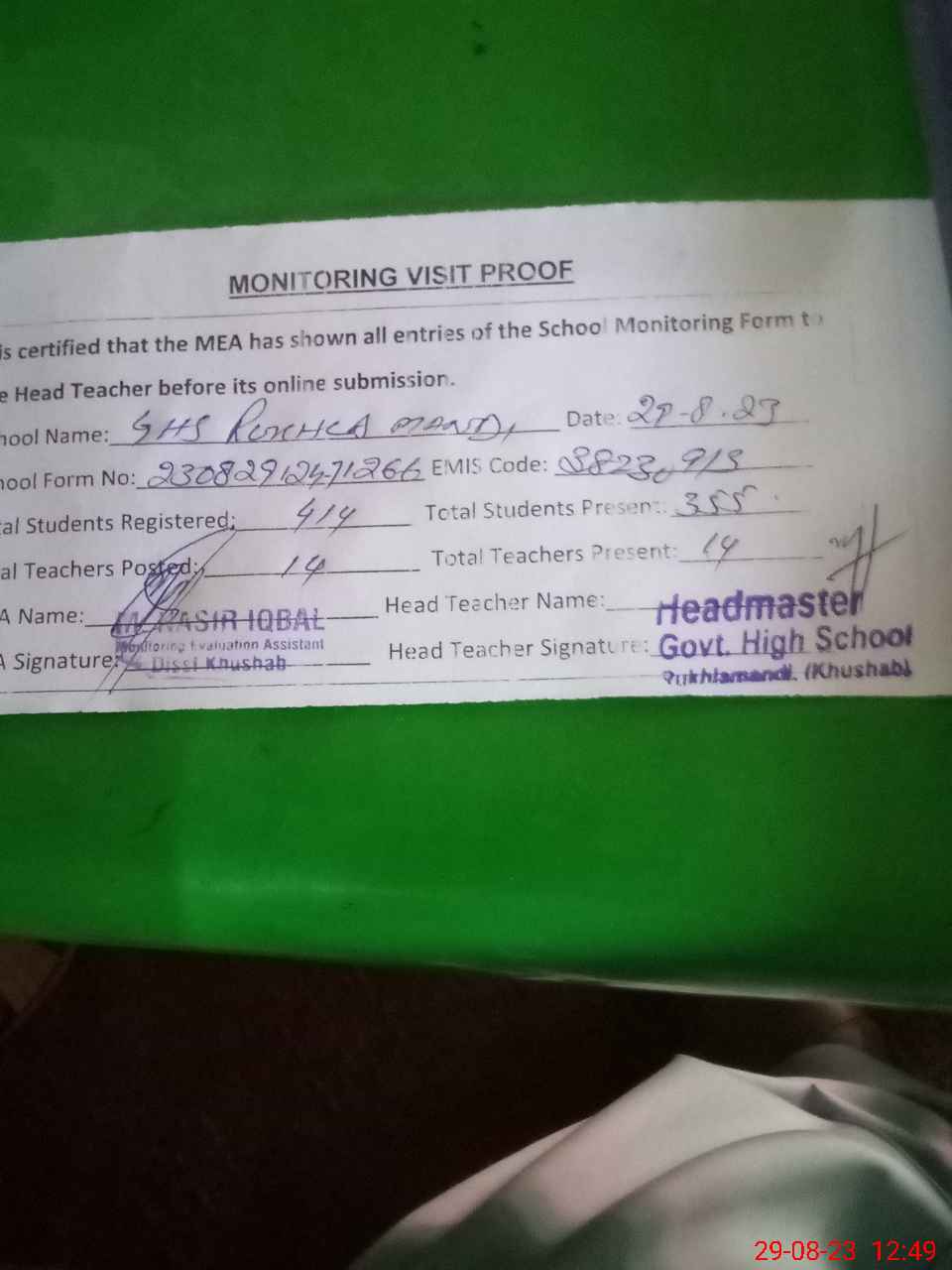 | EMIS Code: 38230913 | Name of School: GHS RUKHLA MANDI | |||