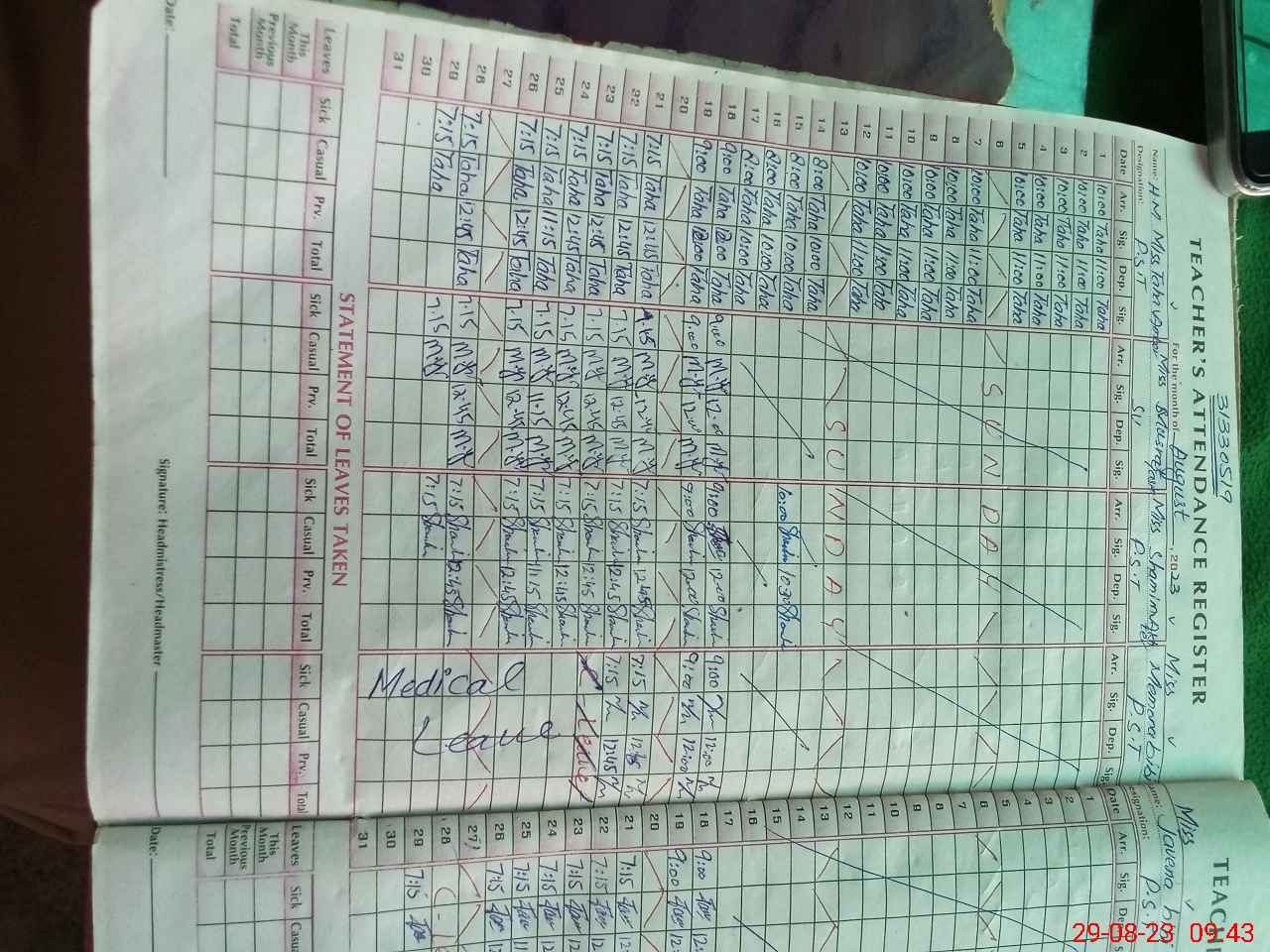 | Leave | Duty | Absent | Maternity | Medical | Ex- Pak |