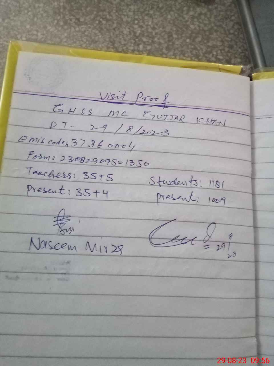 | EMIS Code: 37360004 | Name of School: GHSS MC GUJAR KHAN | |||